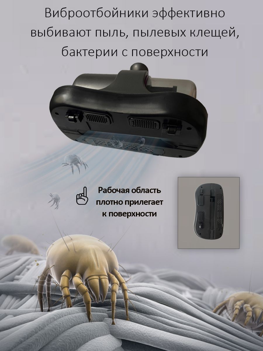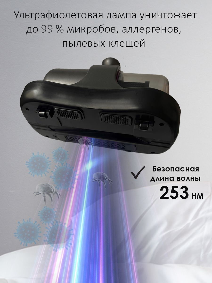 Высокоэфективная очистка - Специальный мотор выбивает пыль и засевших на глубине клещей. ультрафиолетовое излучение - УФ-излучение на большой площади: проникает и разрушает ДНК бактерий и клеток клещей.